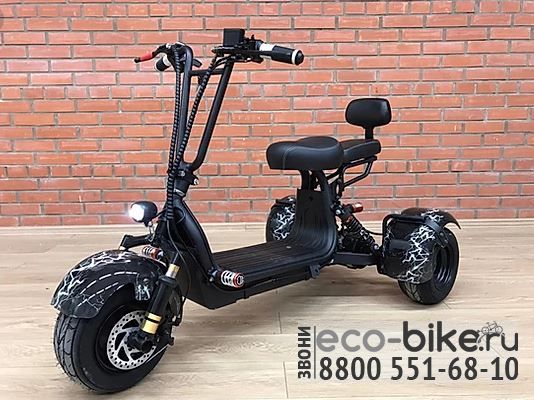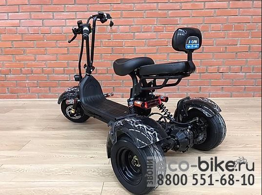 Электроскутер CityCoco GT-X3 - трехколесный электроскутер для езды по городским дорогам и бездорожью. Мощность мотора 500W и максимальная скорость до 35км\ч для быстрого и экологичного преодоления дистанций. Запас хода в 30 км позволяет наслаждаться длительными прогулками без страха разрядки аккумулятора, который заряжается от домашнего источника электроэнергии за 6 часов. Крепкая конструкция за счёт металлической рамы и грузподъёмность до 150 кг позволяет использовать электроскутер людям разной комплекции и возраста, а так же перевозить пассажиров.