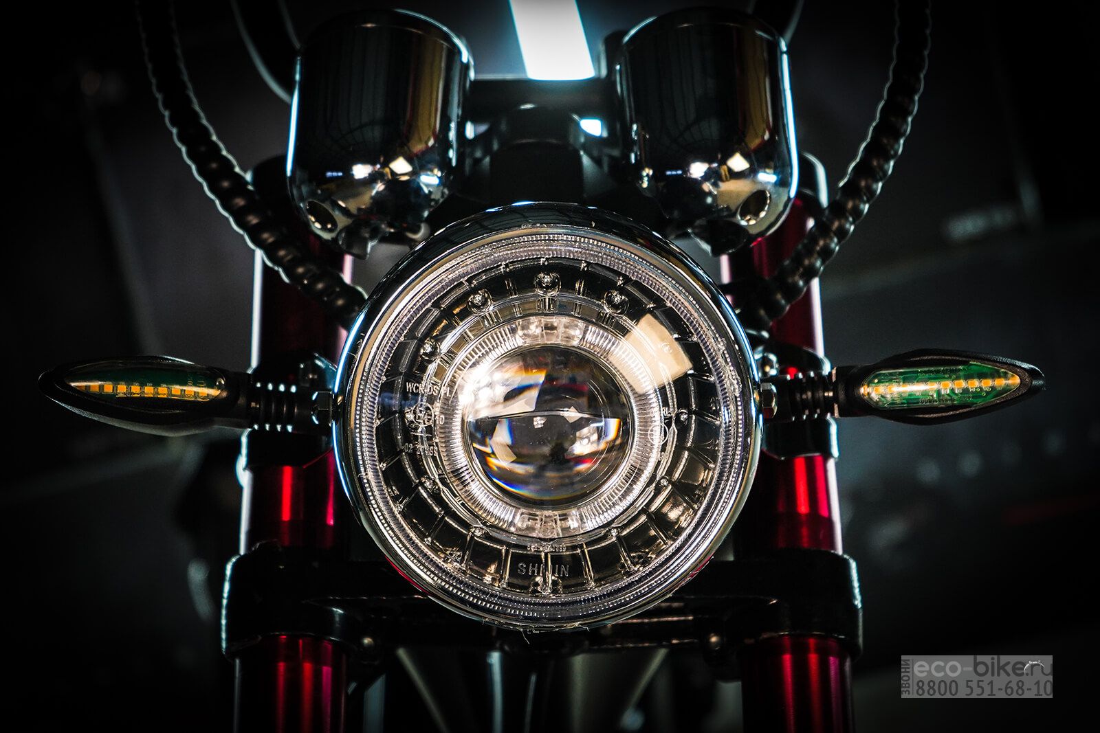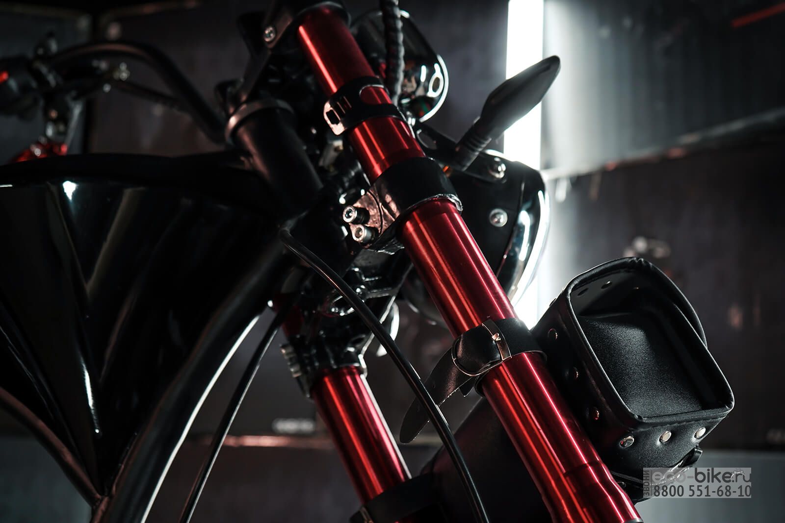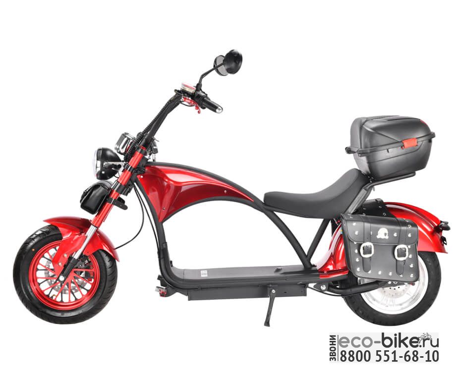 Электроскутер Citycoco WS Wild Wheel 3950W – является самым быстрым электробайком! Скутер имеет эффектный дизайн, напоминающий мотоцикл-чоппер. 12-дюймовые хромированные диски и красное литьё переднего колеса делают скутер стильным и запоминающимся. Мощность мотор-колеса составляет 3000W, что позволяет развивать скорость до 75 км/ч. Аккумулятор в 31 Ah позволяет проехать до 80 км на одном заряде. Электроскутер обладает прекрасной проходимостью, имеет съемную герметичную батарею, расположенную в полу.