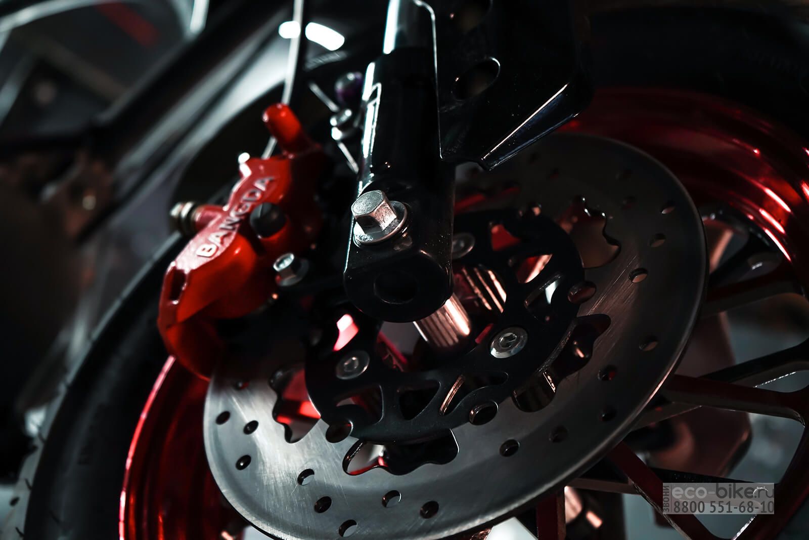 - оснащен 3000 ваттным мотором, разгоняющий электроскутер до 70 км/ч;