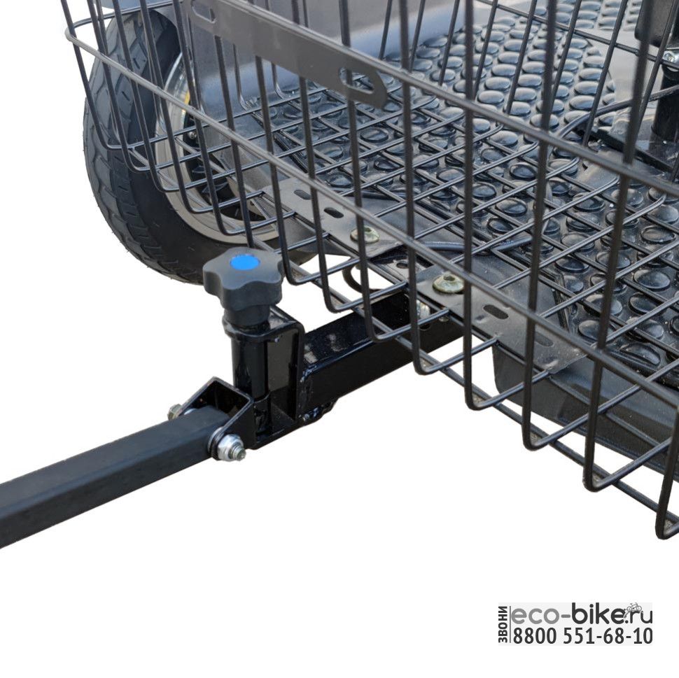 Электросамокат также оснащён передней фарой, индикатором заряда батареи, звуковым сигналом, переключателем заднего хода, а также переключателем мощности на 350 или 700 ватт. В комплект входят металлическая корзина для багажа, спинка и большой прицеп, что делает его идеальным выбором для комфортных поездок.