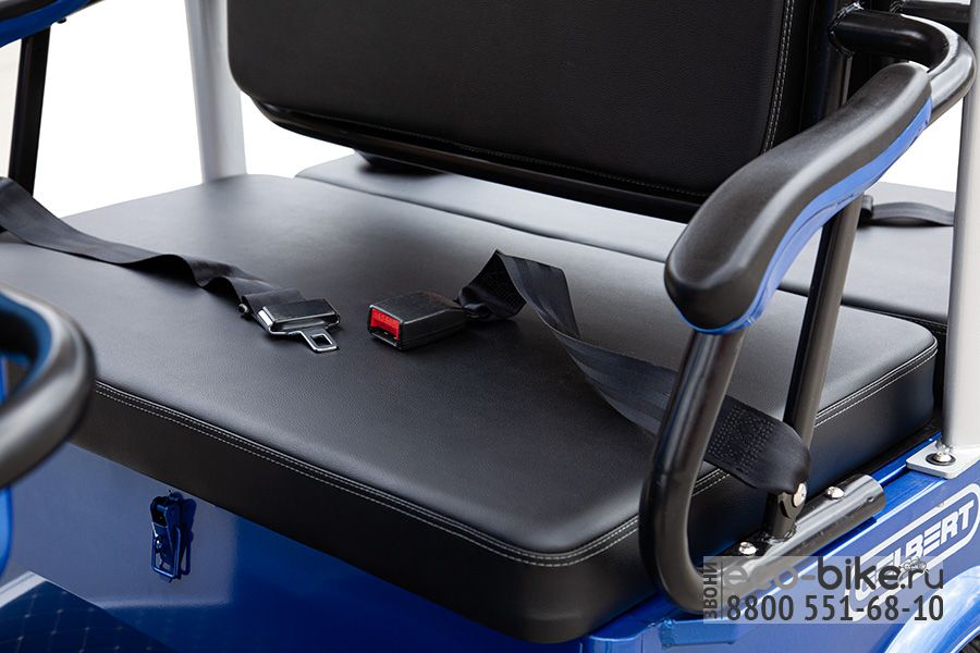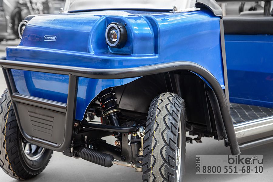 - Нагрузка 300 кг: Гольф-кар рассчитан на большую нагрузку, что позволяет перевозить нескольких пассажиров или полезный груз.