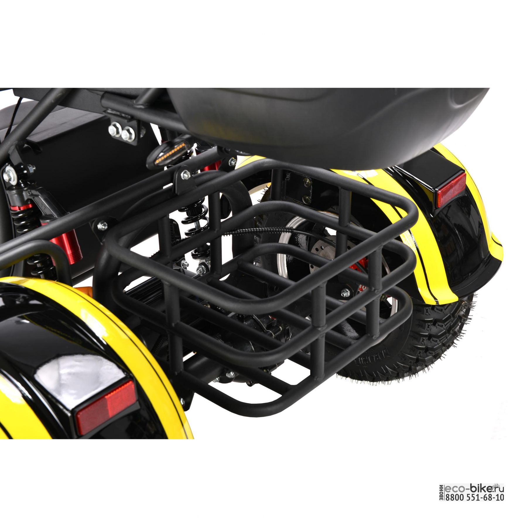 - оборудован одной мощной фарой, двумя стробоскопами, задними ходовыми огнями сертификации ECC и поворотниками с ярким свечением